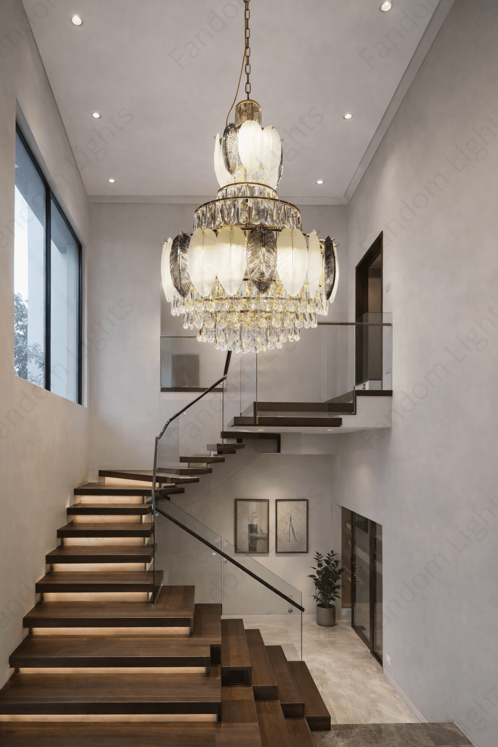 1000MMX800MM K9 CRYSTAL Leaf LED DOUBLE HEIGHT STAIR CHANDELIER