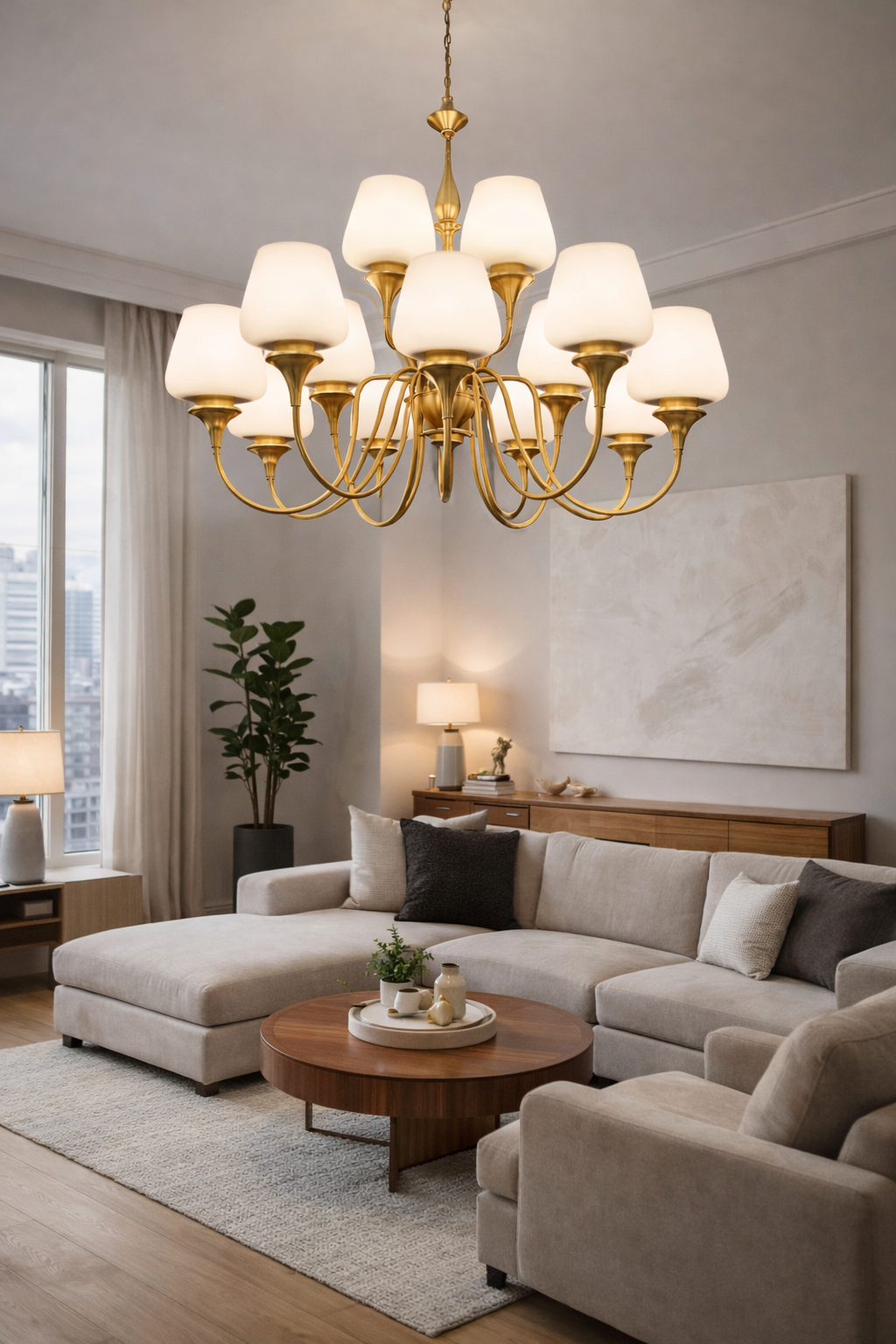 12 Light Frost Glass Brass Italian Chandelier Light for Dining Hall - Warm White