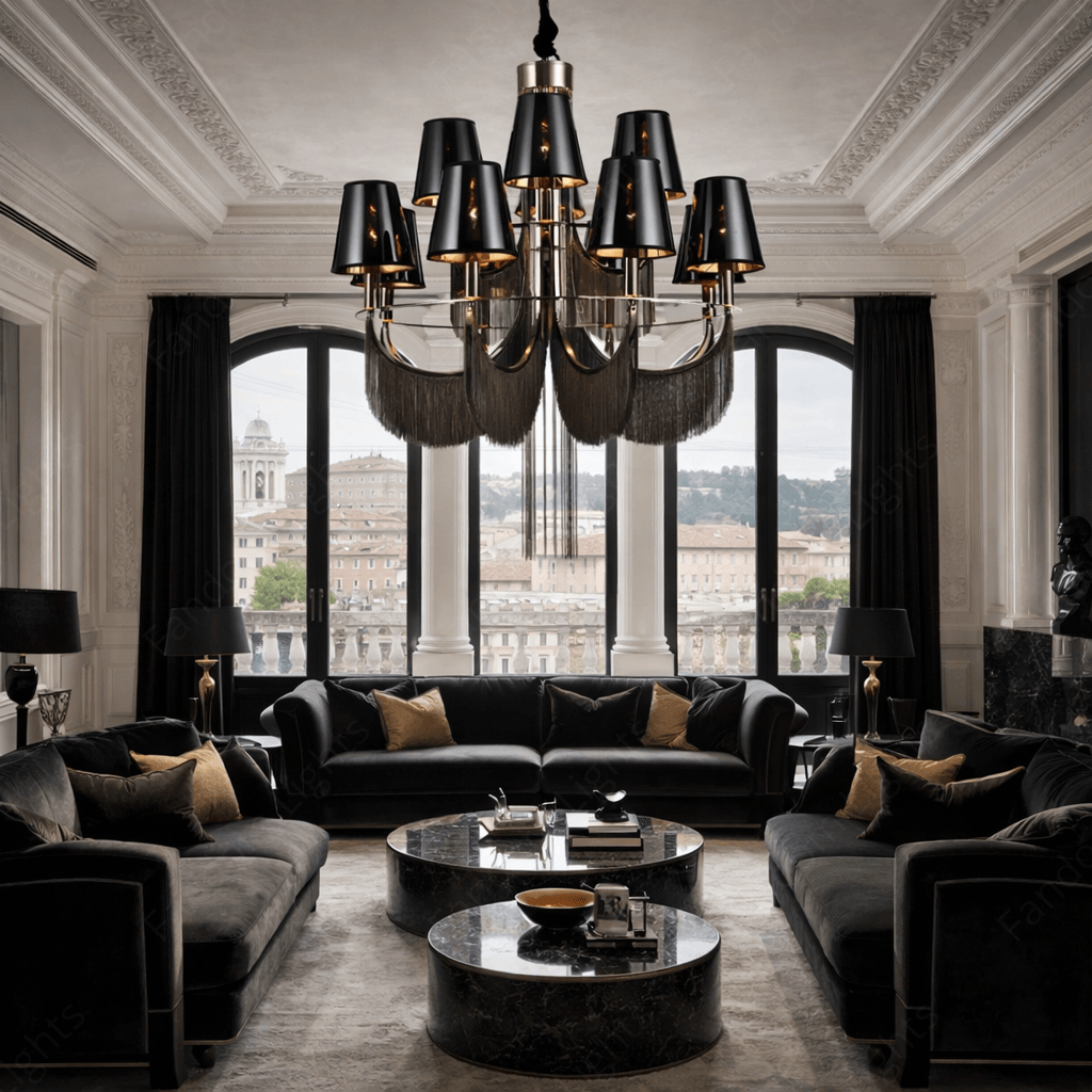 12 LIGHT SHADE Black ITALIAN CHANDELIER CEILING LIGHTS HANGING
