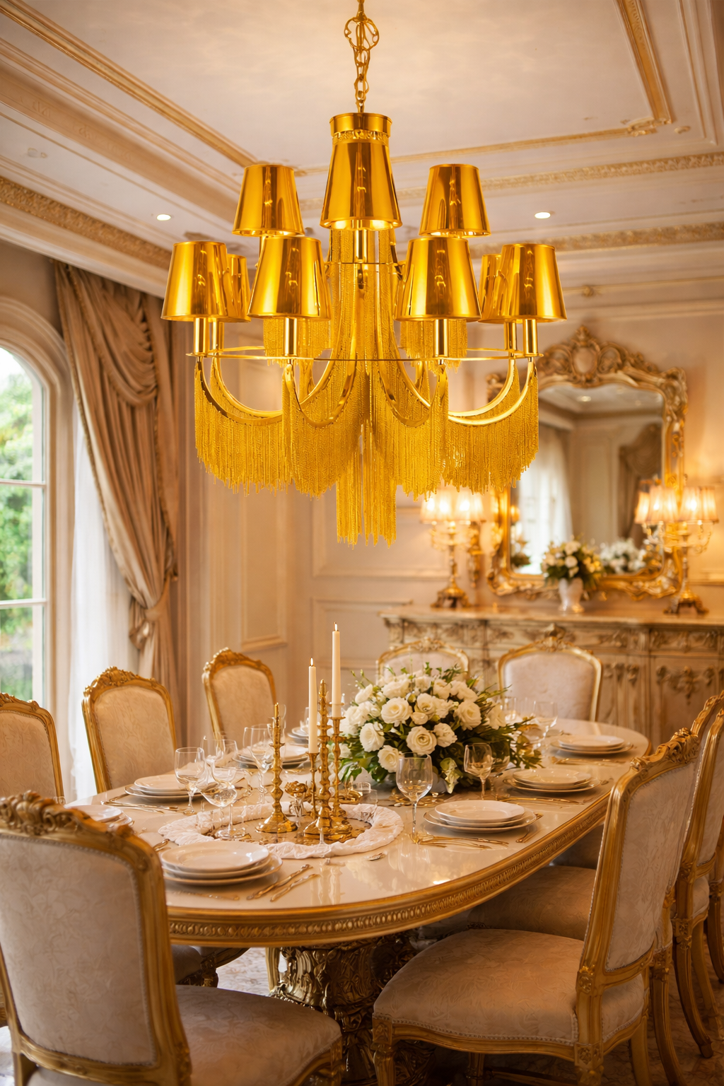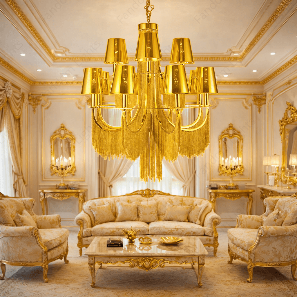 12 LIGHT SHADE Gold ITALIAN CHANDELIER CEILING LIGHTS HANGING