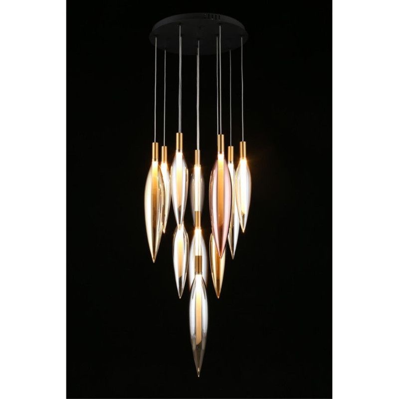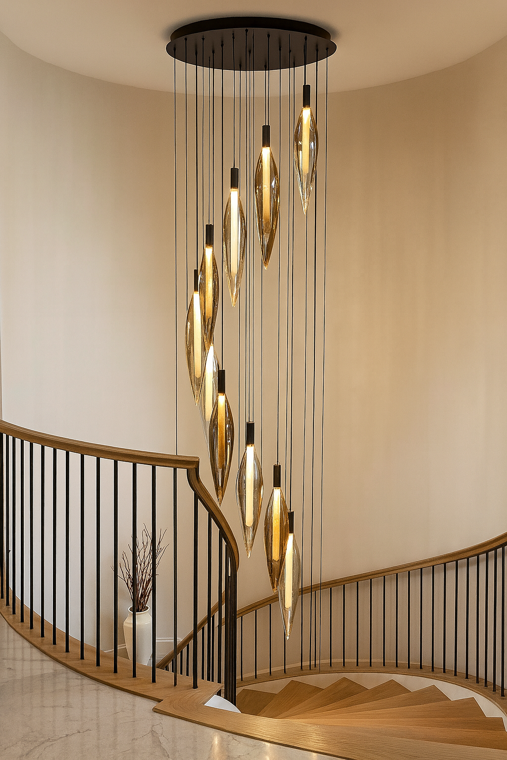 13-LIGHT LED GLASS LIGHT DOUBLE HEIGHT DUPLEX STAIR CHANDELIER - WARM WHITE