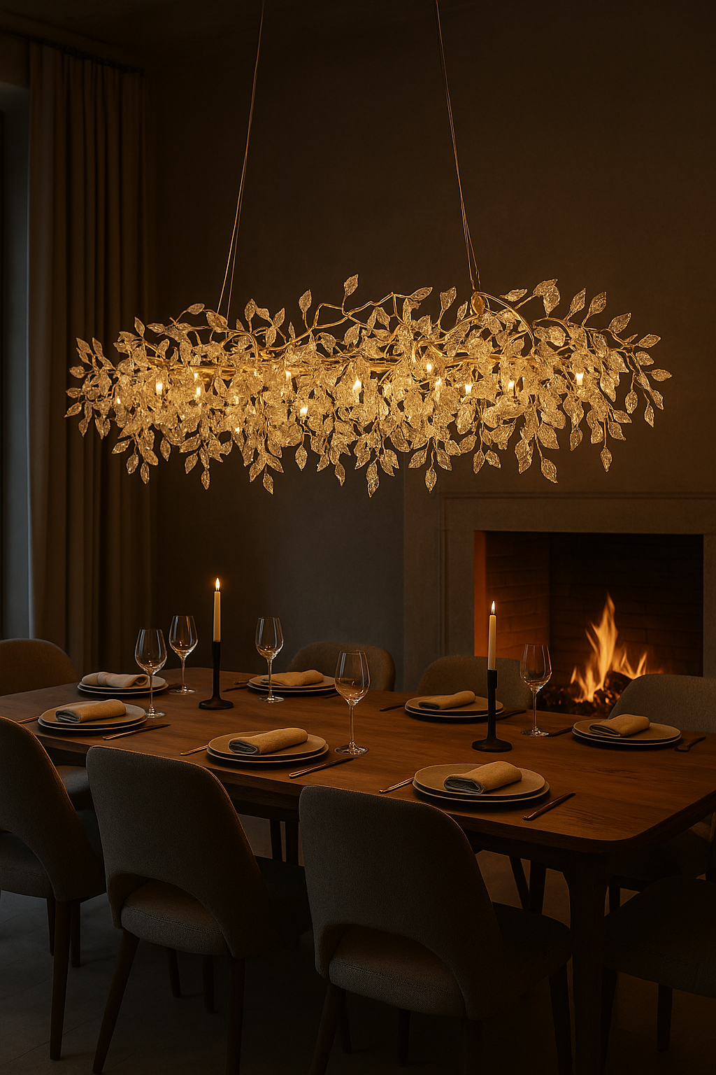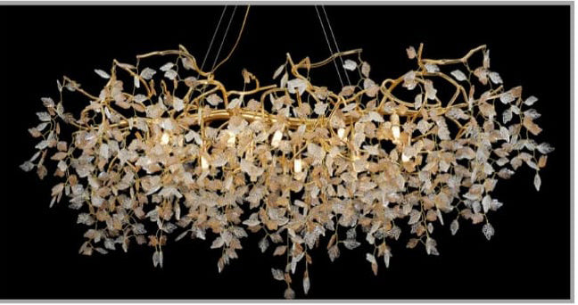 1600MM Long Golden Vine Leaf Crystal Chandelier Ceiling Lights Hanging for Living and Dining Room