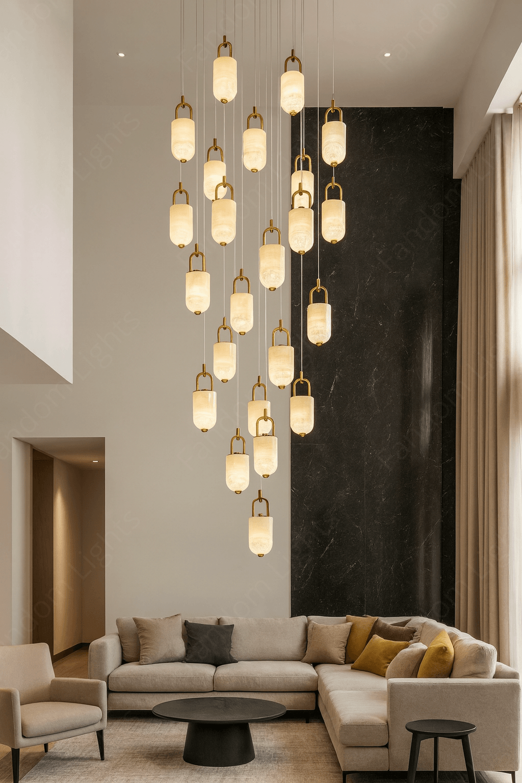 20-LIGHT LED Stone DOUBLE HEIGHT STAIR CHANDELIER - WARM WHITE