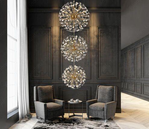 Elevate your space with our K9 Crystal 3 Fireworks Double Height Chandelier, featuring a spectacular triple-tier design with crystal balls measuring 400MM, 500MM, and 600MM. Standing at an impressive 8 feet tall, this statement piece creates a cascading illumination effect that transforms any grand entryway, hotel lobby, or luxury residence with its brilliant light refraction and sophisticated presence.