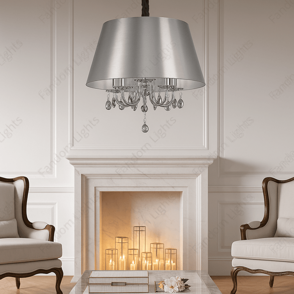 500 MM Chrome Italian With Shade Chandelier for Living Dining Room Light- Warm White