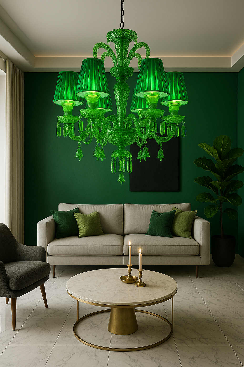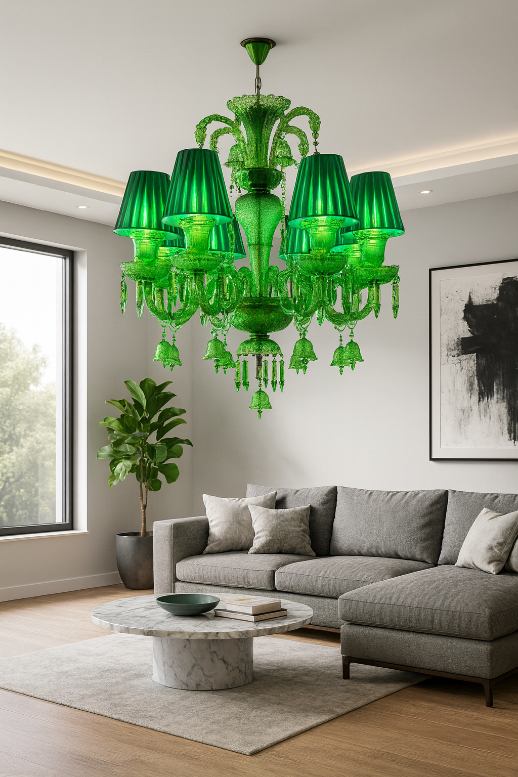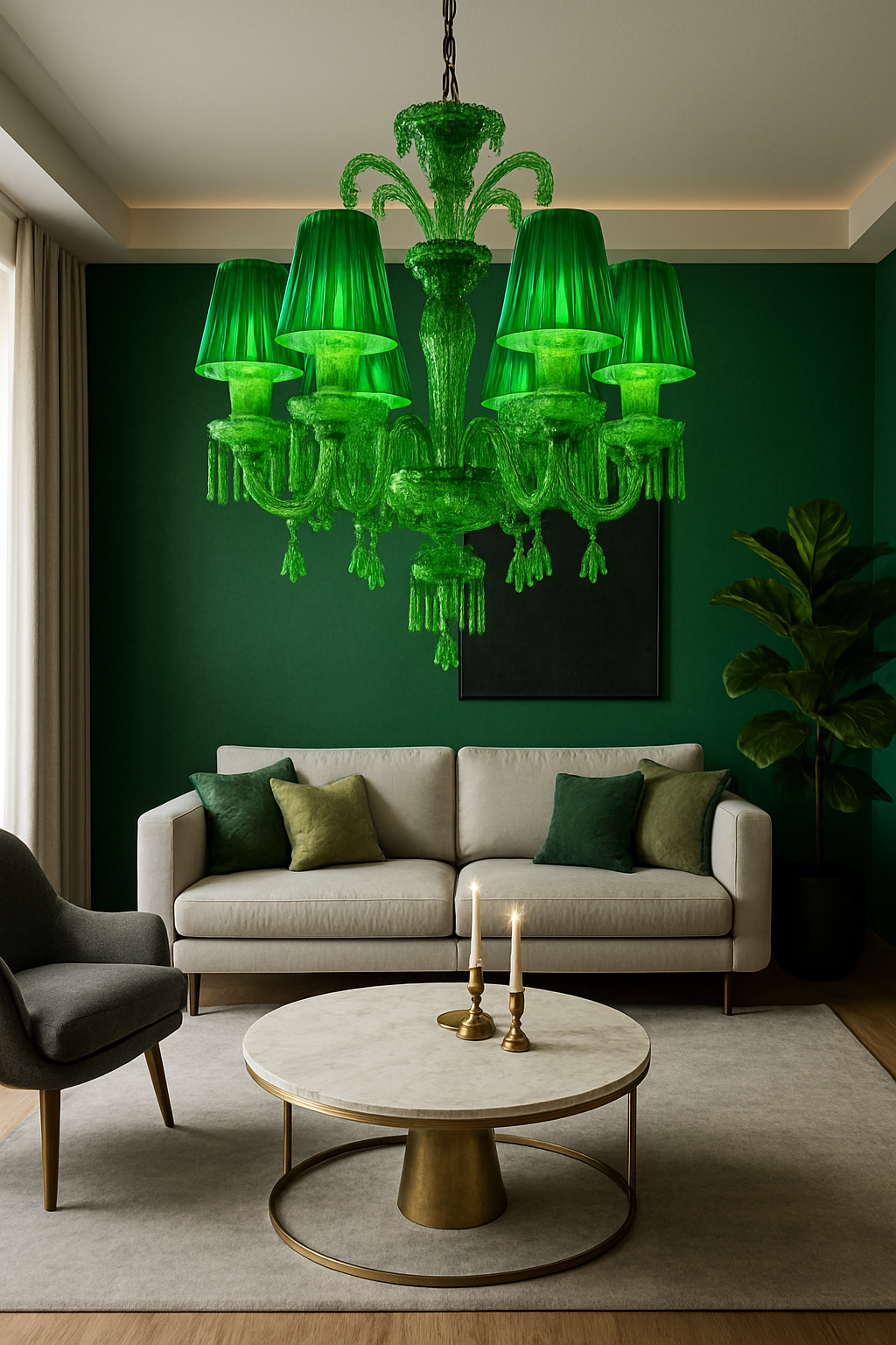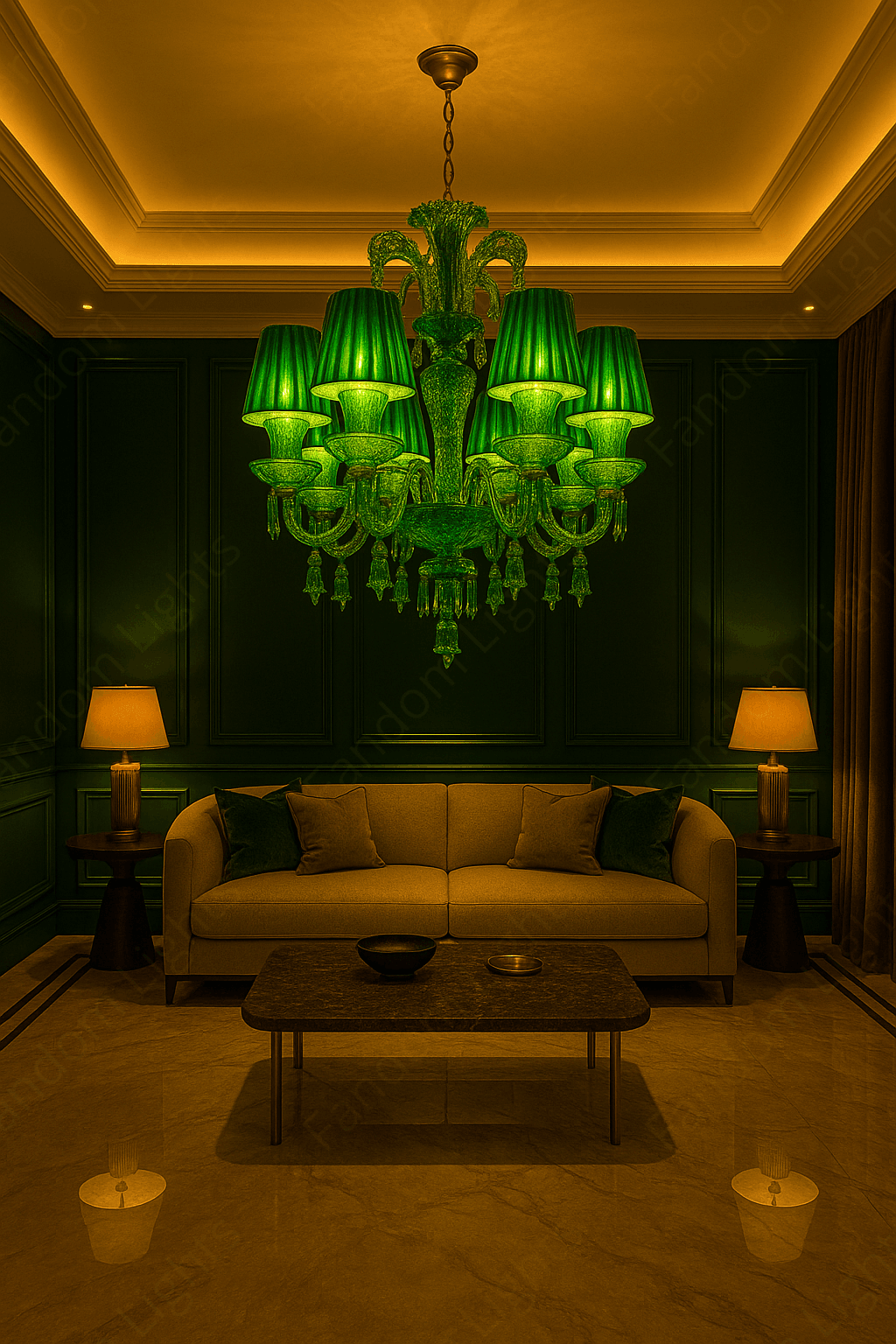 8 LIGHT Green GLASS ITALIAN CHANDELIER LIGHT FOR DINING HALL