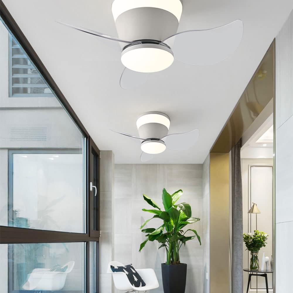 22 Inch White Low Profile Ceiling Light with Fan LED Chandelier