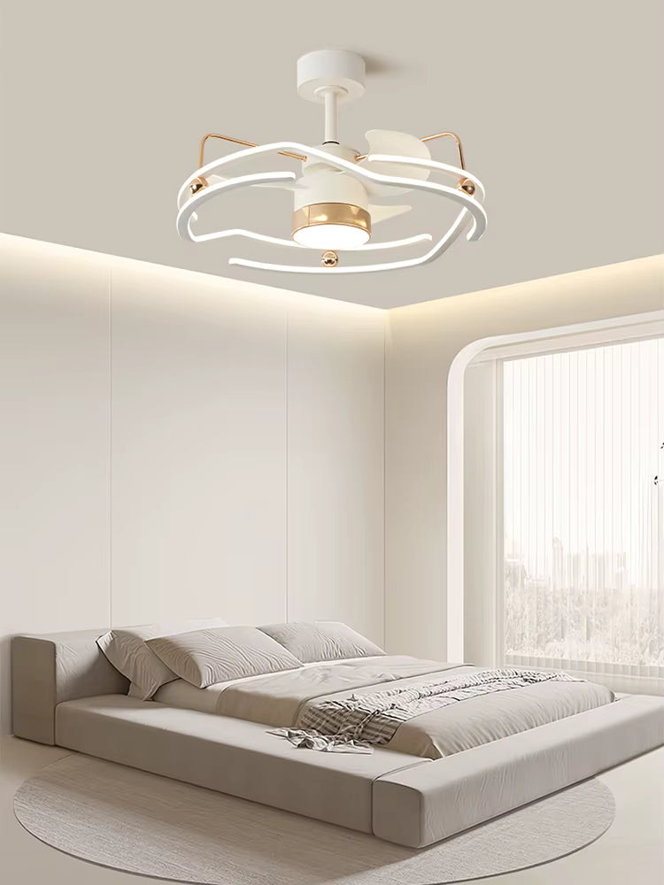 24 Inches Gold Whiite Ceiling Light with Fan LED Chandelier