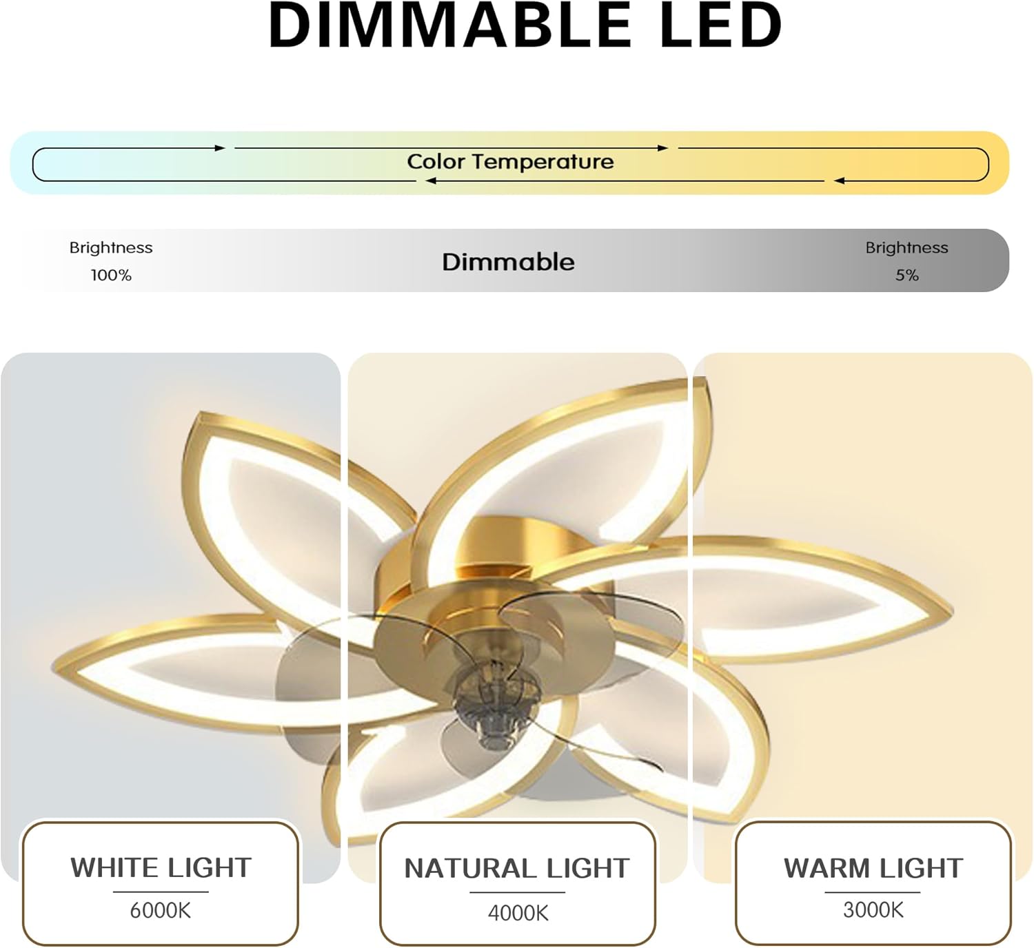 • 【Color and Speed】The chandelier ceiling fan includes 3 Colors Light, White Light/Neutral Light/Warm Light, It can be changed to create different atmosphere by remote control. high brightness, low power consumption and long service life.The fan speed can be adjusted by a High-mid-low Switch.