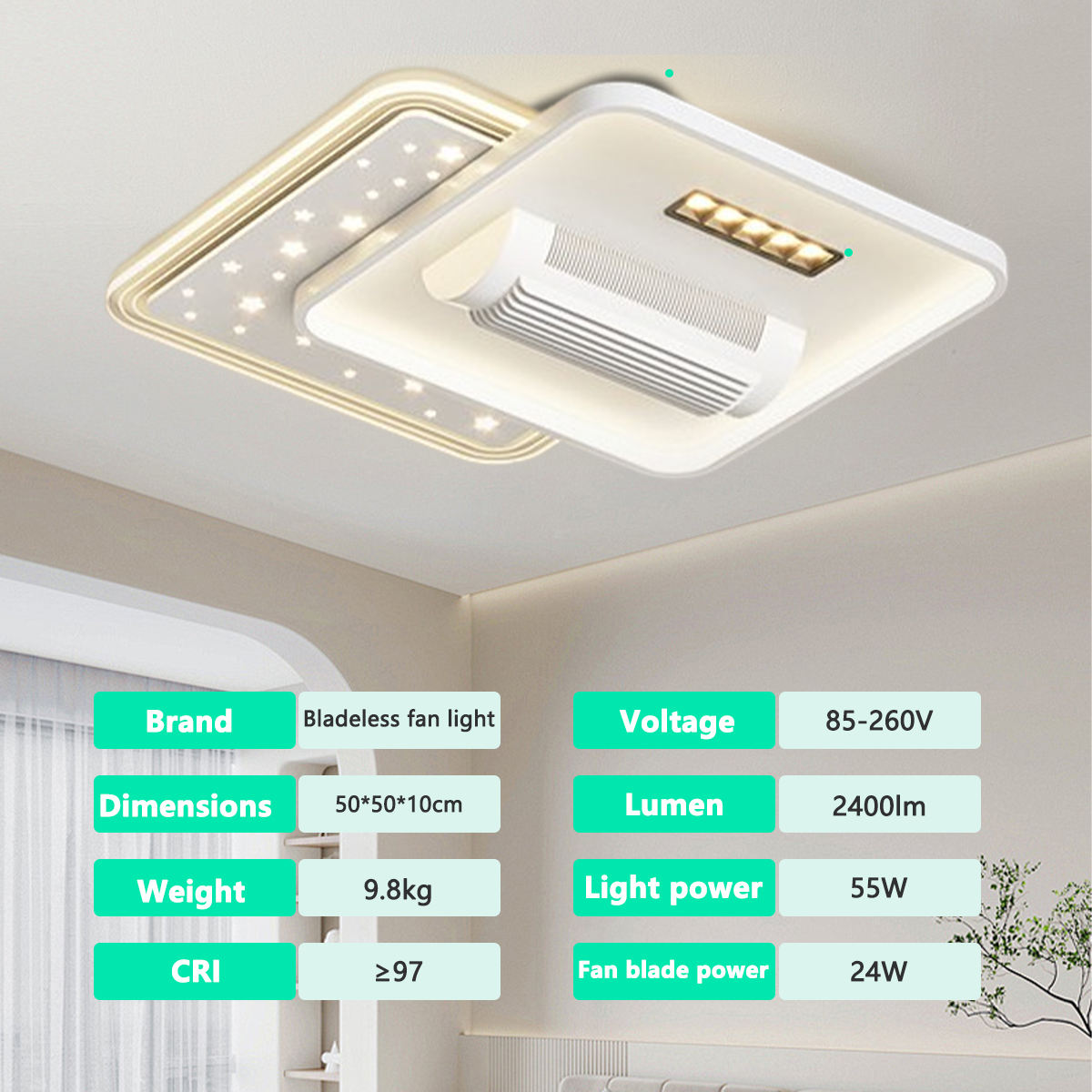 - 500x500MM Low Ceiling Height Bladeless Fan