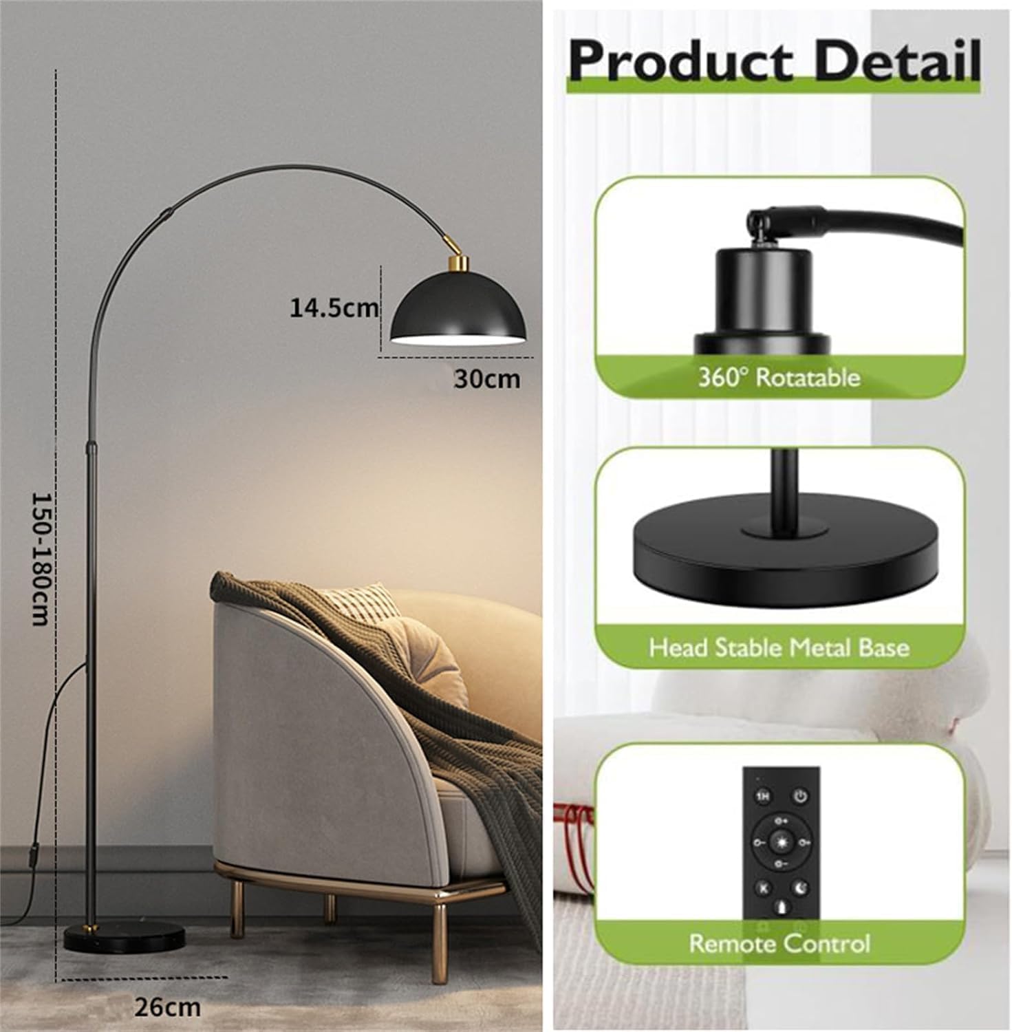 ARC FLOOR LAMP LIVING ROOM STANDING LAMP - BLACK