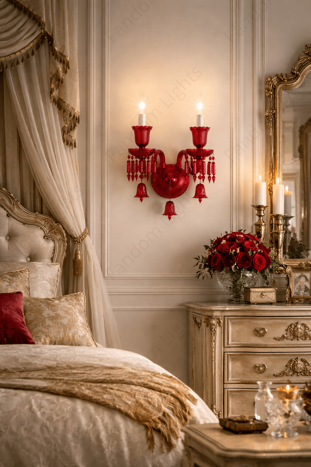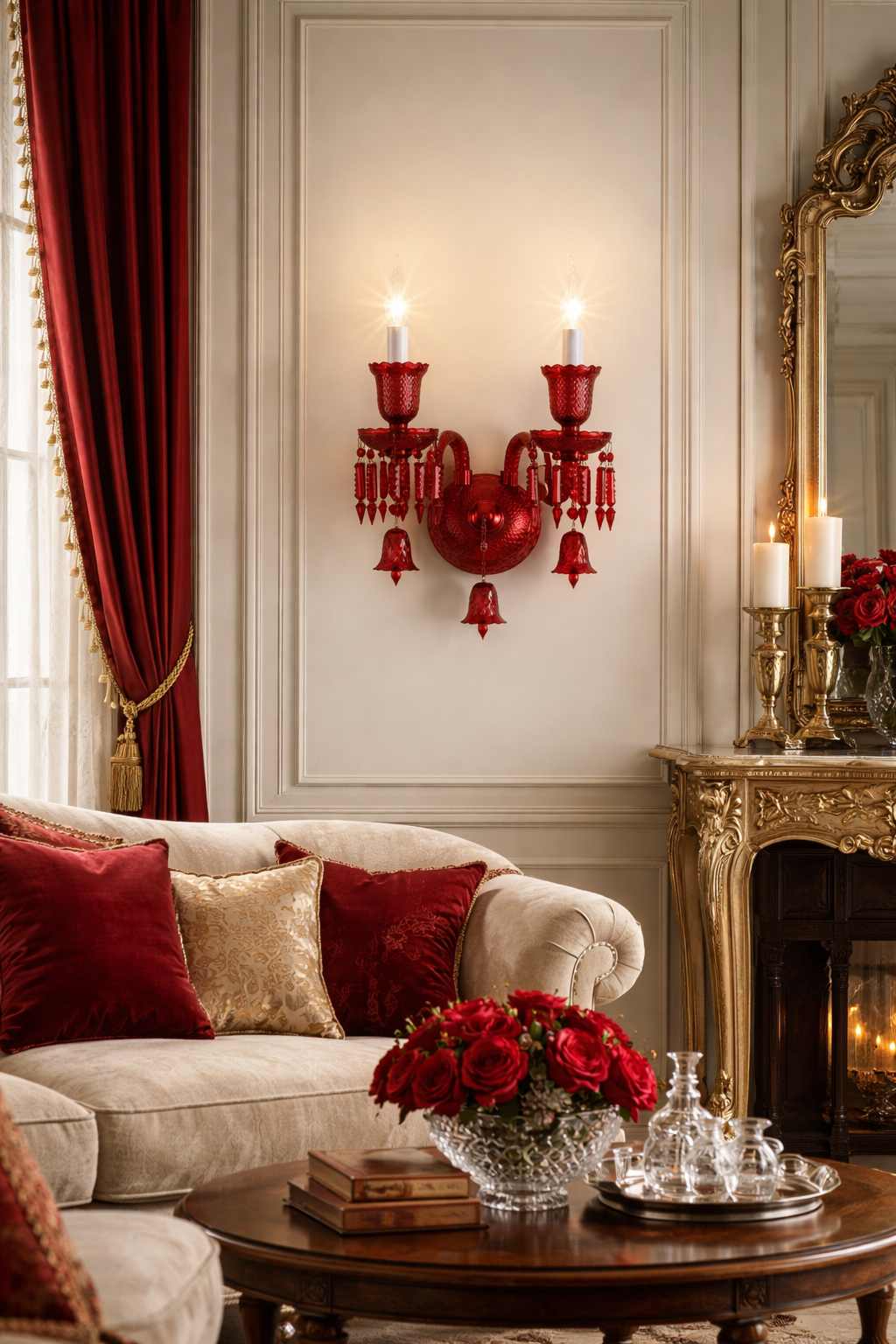 Italian Coral Red Glass Wall Light Electroplated - Warm White