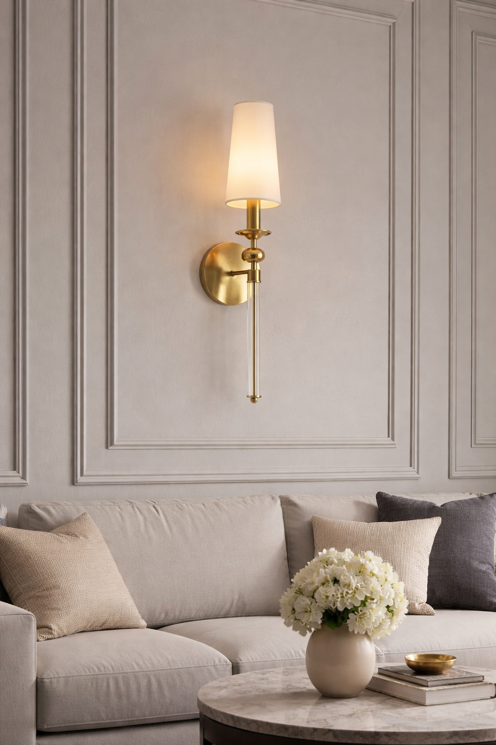 Wall Light Wall Light Electroplated Brushed Brass with Glass Rod Fabric Shade - Warm White