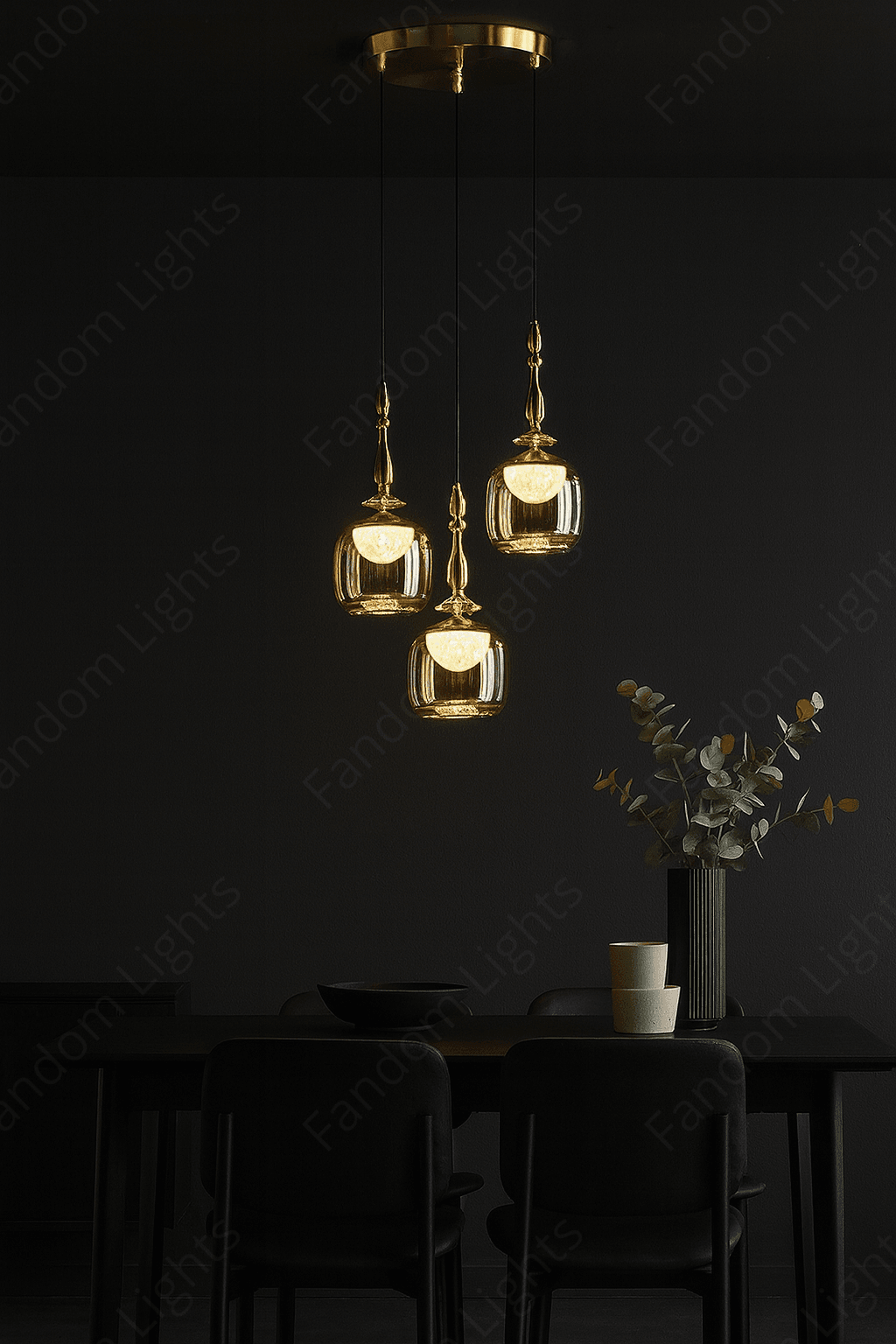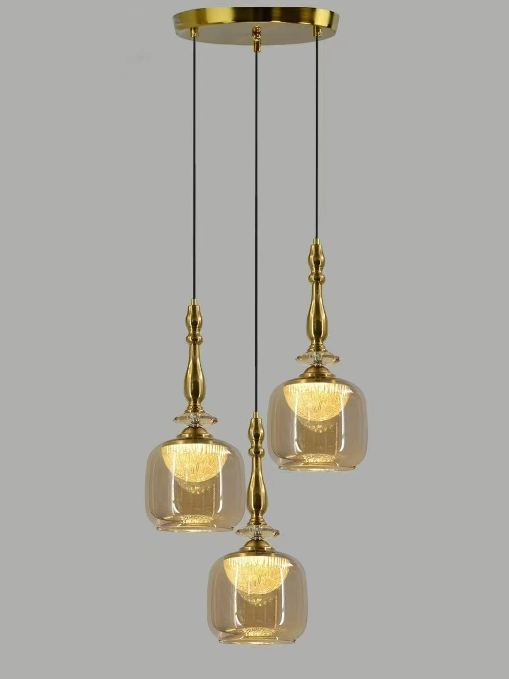 3 Light Champagne Glass Pendant Ceiling Hanging Light - Warm White