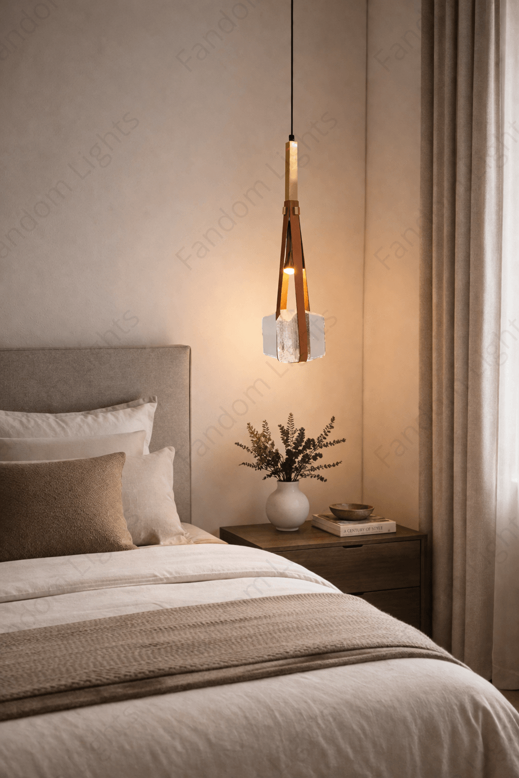 led Leather Tan Belt Hanging Pendant Ceiling Light