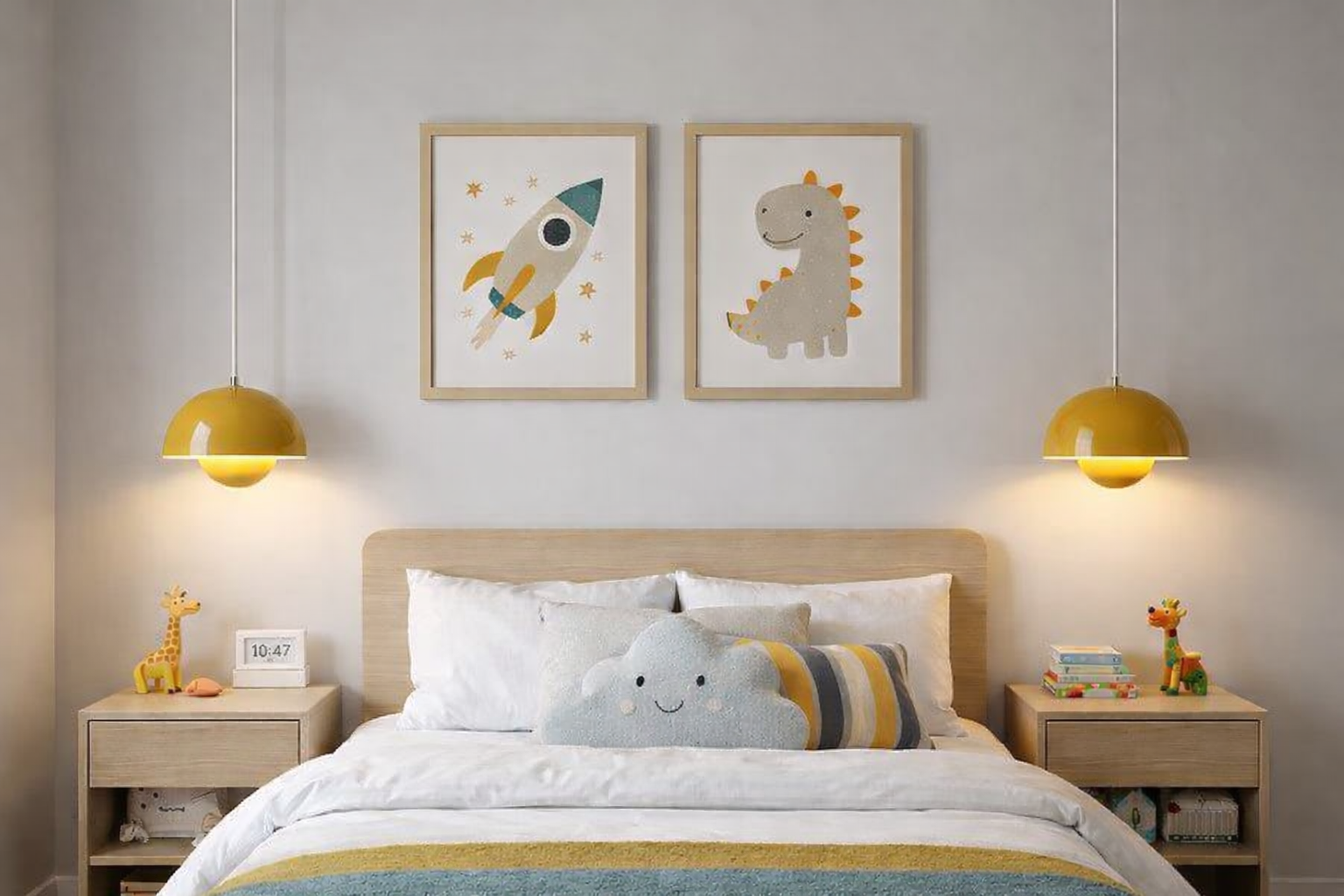 Led Yellow Metal Pendant Light for Bedside Dining Hanging Light