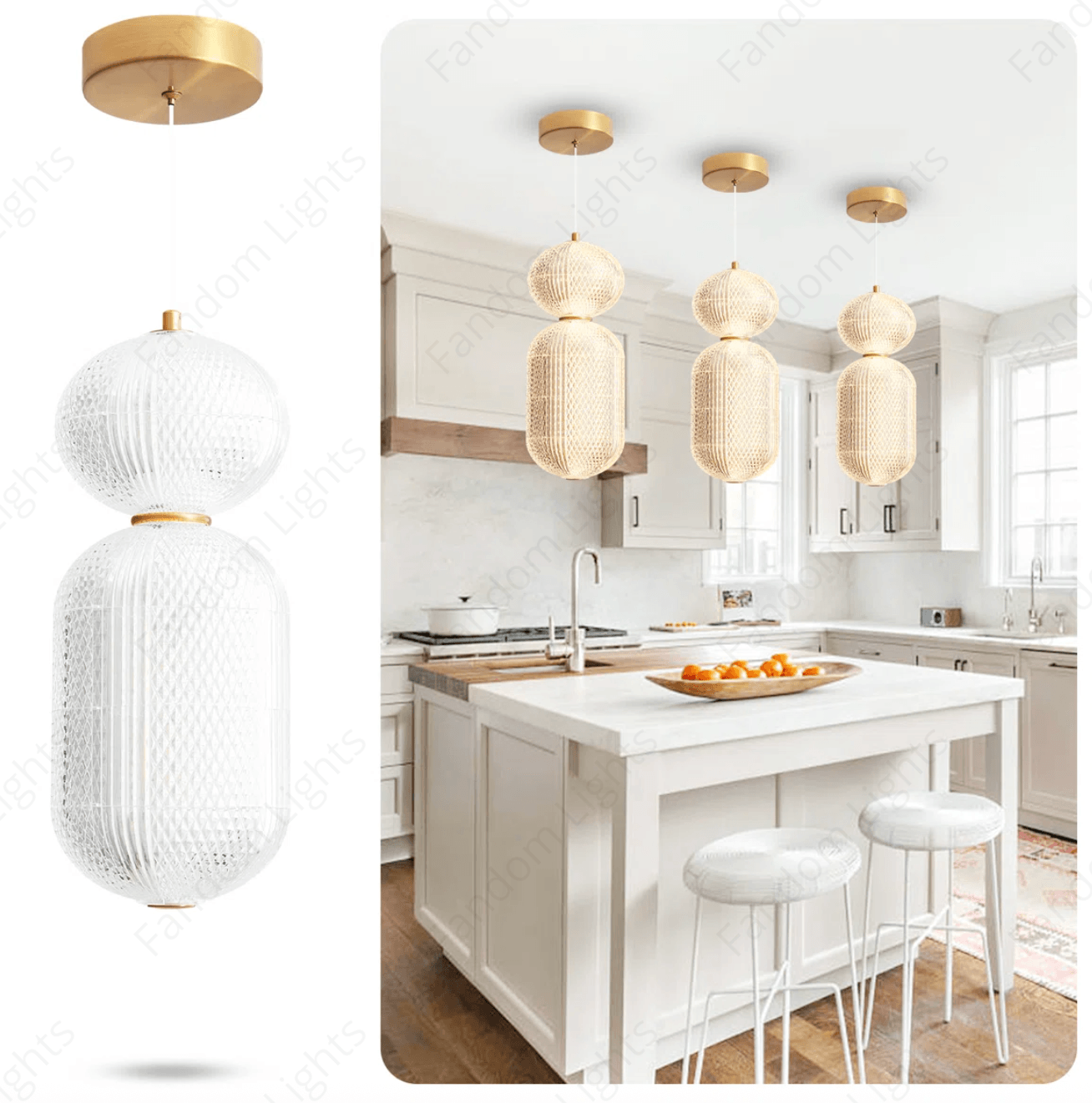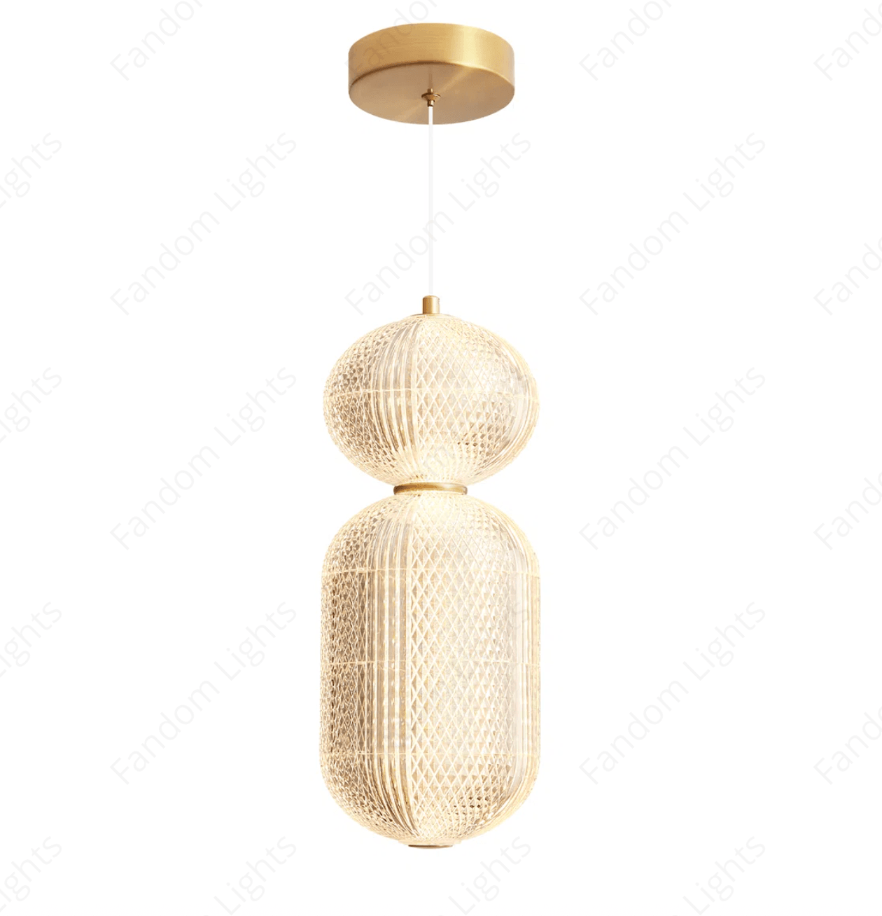 2 Led Gold Modern Pendant Light for Bedside Dining Hanging Light - Warm White