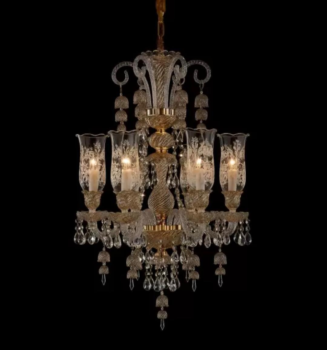 6 LIGHT Glass Champagne ITALIAN CHANDELIER LIGHT