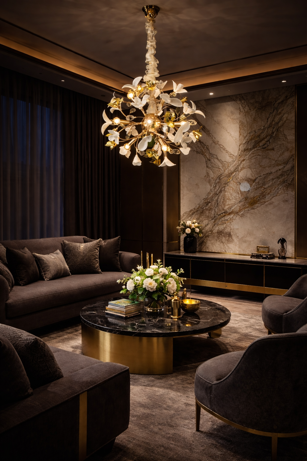 600MM LONG GOLDEN CRYSTAL CERAMIC FLOWER CHANDELIER CEILING LIGHTS HANGING