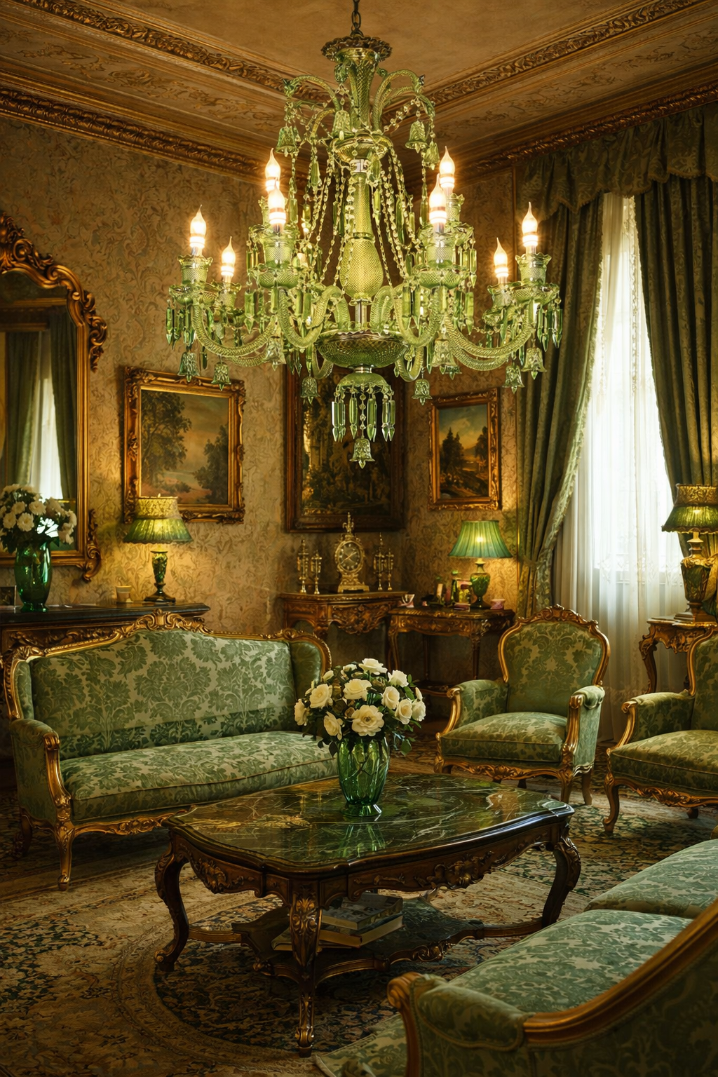 8 LIGHT Green GLASS ITALIAN CHANDELIER LIGHT FOR DINING HALL