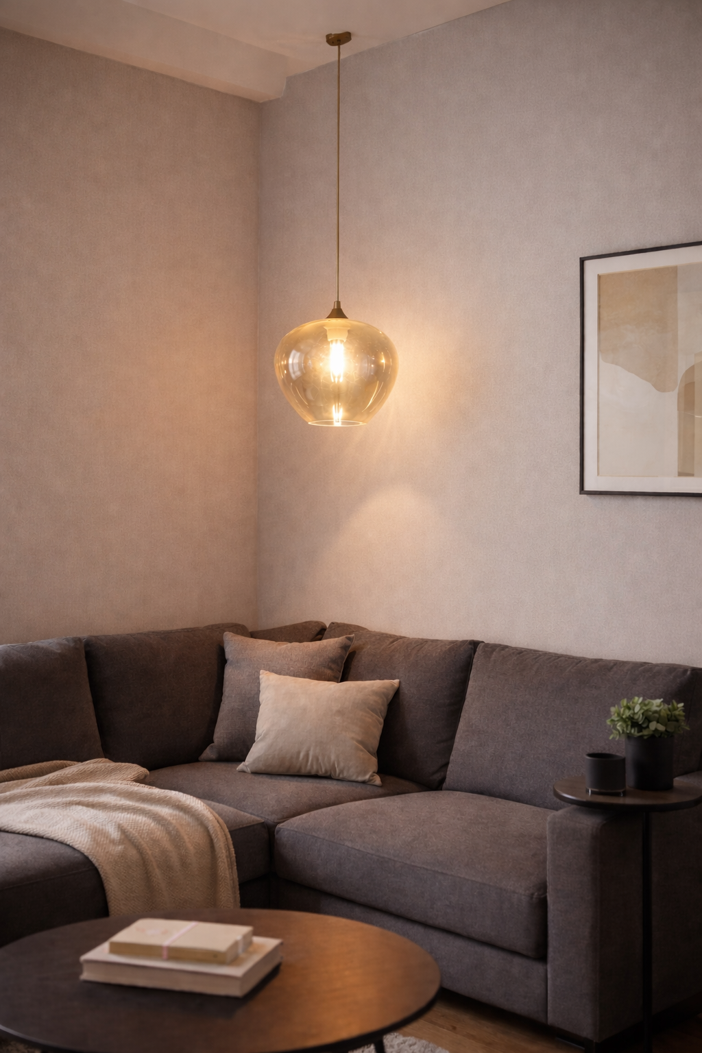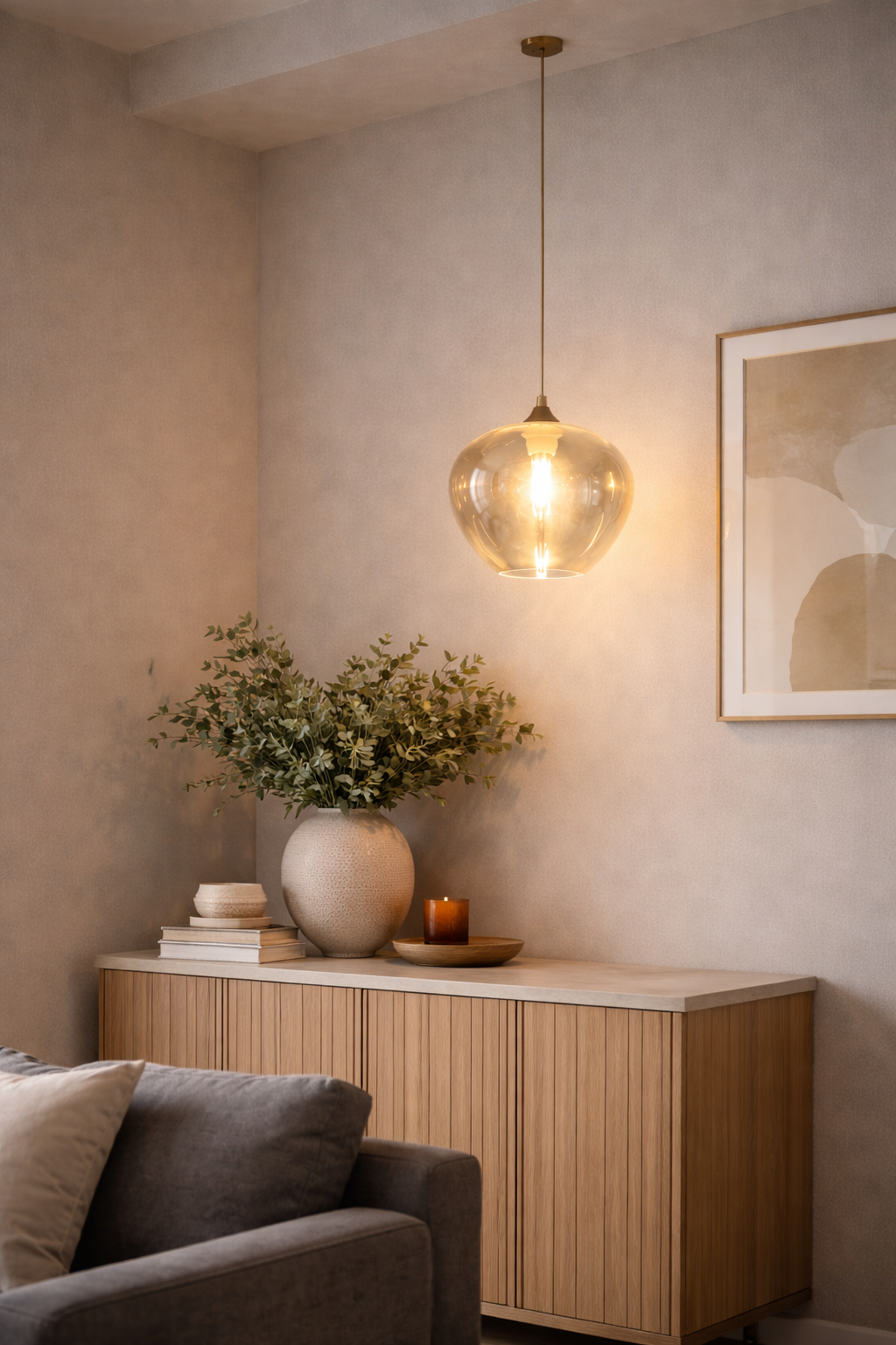 GLASS AMBER PENDANT CEILING LIGHT BEDSIDE HANGING LIGHT DINING ROOM