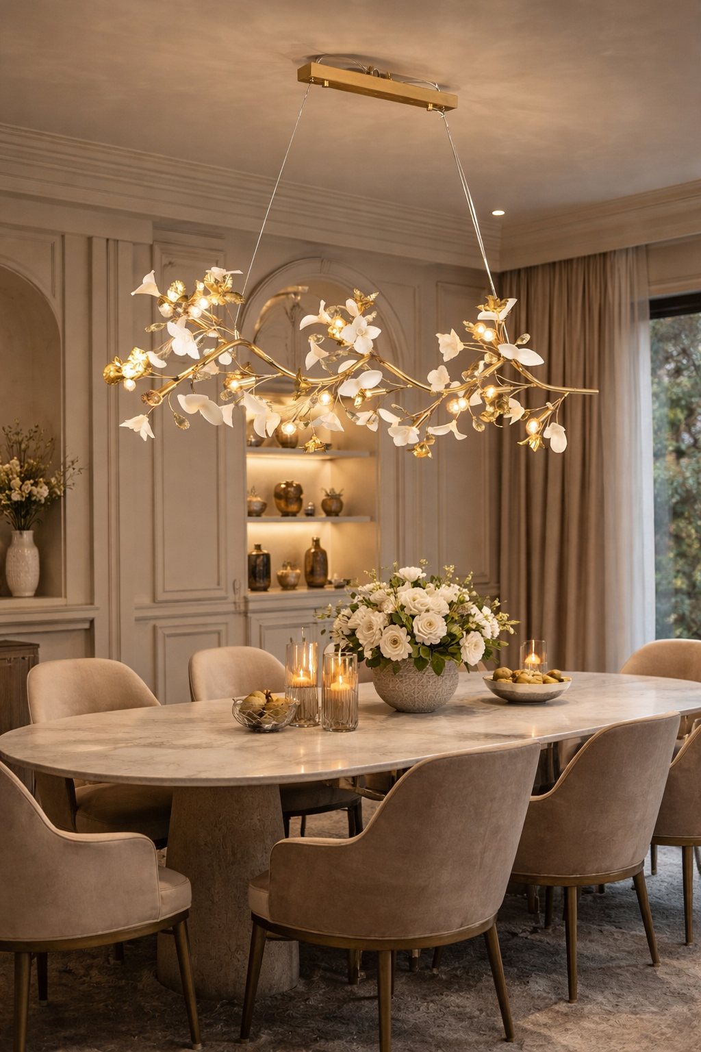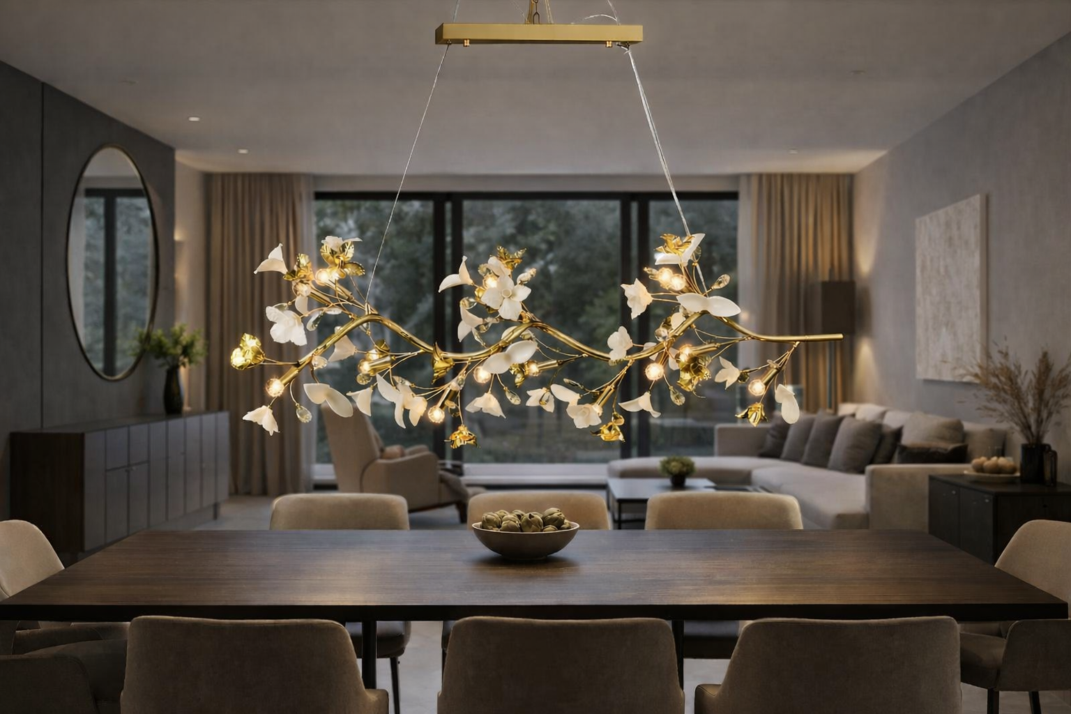 1500MM LONG GOLDEN CRYSTAL CERAMIC FLOWER CHANDELIER CEILING LIGHTS HANGING