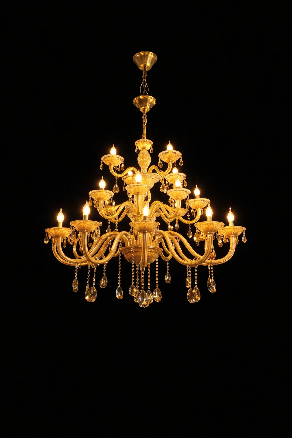 24 LIGHT Amber GLASS ITALIAN DOUBLE HEIGHT CHANDELIER LIGHT