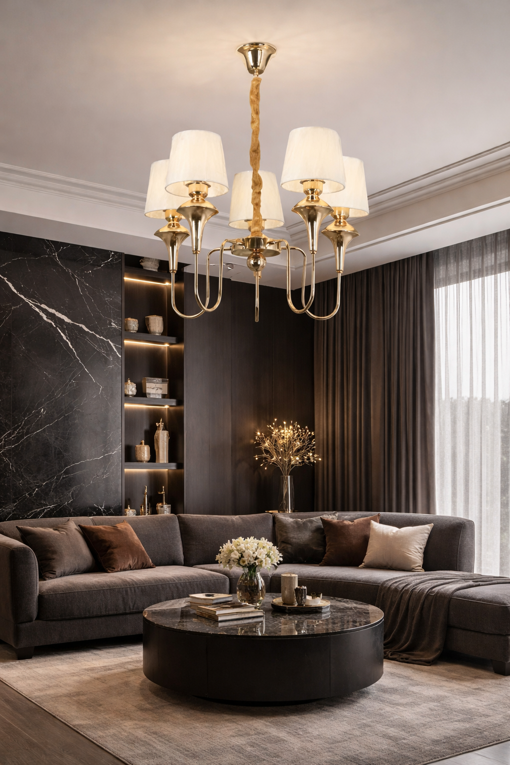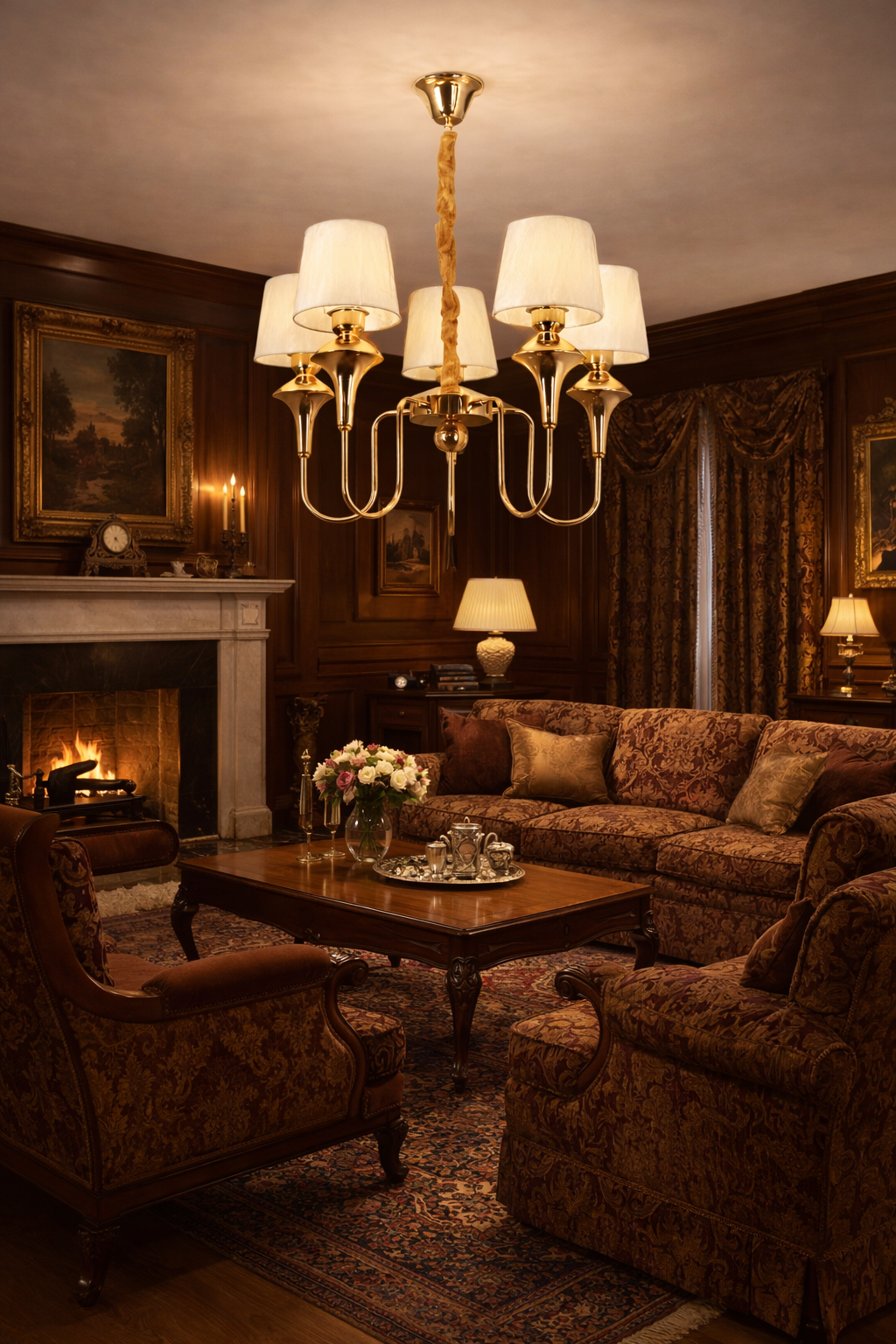 5 Light Gold Italian Chandelier Light for Dining Hall with Shades
