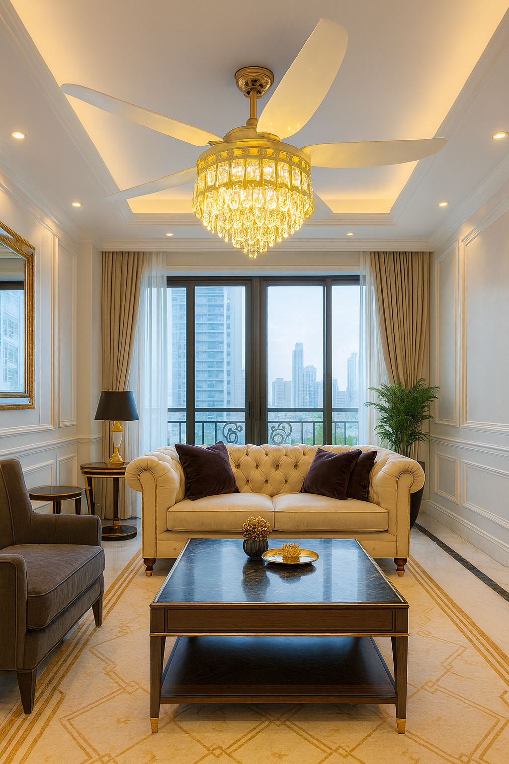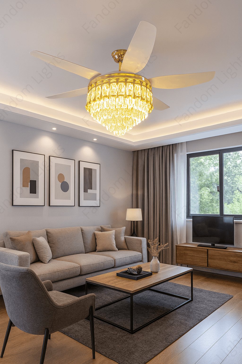 52 Inch High Speed Crystal Ceiling Fan Chandelier Remote Control 6 Blades
