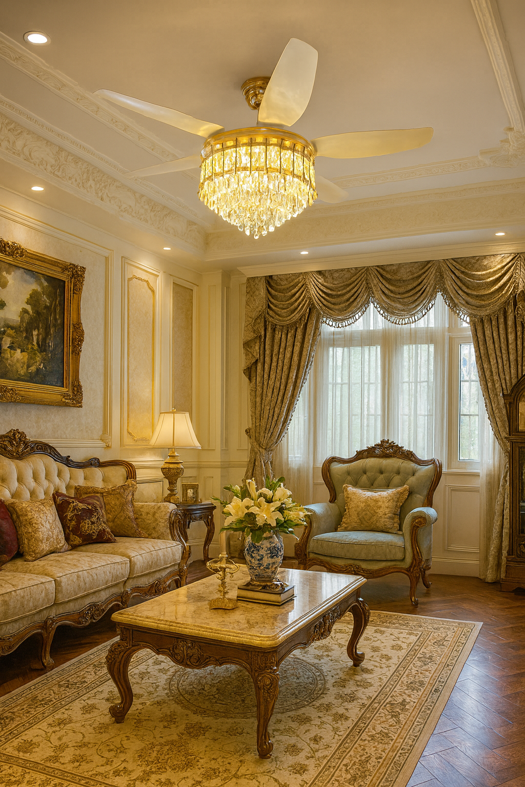 - 【Shabby Chic Ceiling Fan Innovative Design 】Ceiling Fans and LED Chandelier 2 In,It Is Very Cost-effective Black Gold color Body (Not Silver Black)